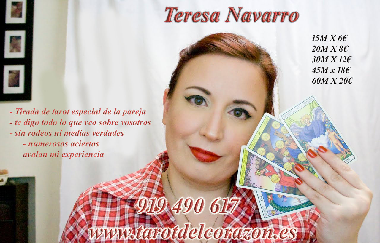 Persona realmente sabia y con unas facultades psíquicas que van más allá de lo común. Esta vidente tiene una sensibilidad muy desarrollada. Y su empatía le hace aproximarse a tus sentimientos y hacerlos propios. Además de saber interpretar las energías que le llegan a través de tu voz para recibir informaciones que le ayudan a obtener las respuestas a tus preguntas. Y a ofrecerte una orientación útil y práctica en tu vida. A continuación paso a presentarte a Teresa Navarro..... Nuestra vidente y tarotista, que pone a tu disposición todos sus años de experiencia en el arte de la adivinación y la psicología, para guiarte y asesorarte sobre todas tus dudas por muy difíciles que estas sean, su experiencia en el tarot egipcio te dará hasta el más mínimo detalle. Desde aquí queremos aprovechar para dar las gracias a nuestros miles de clientes, que desde hace ya mas muchos años han depositado su confianza en nosotros, vuestra confianza es nuestro mayor aval de garantía.